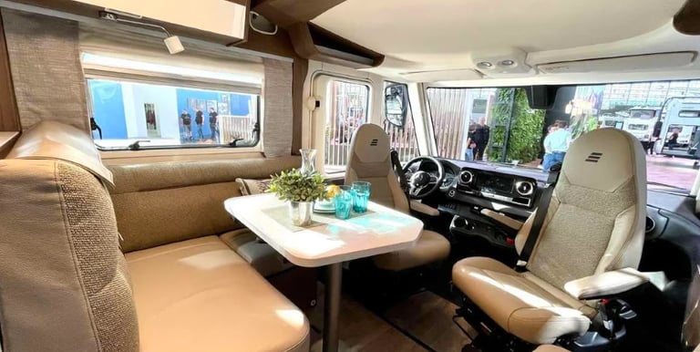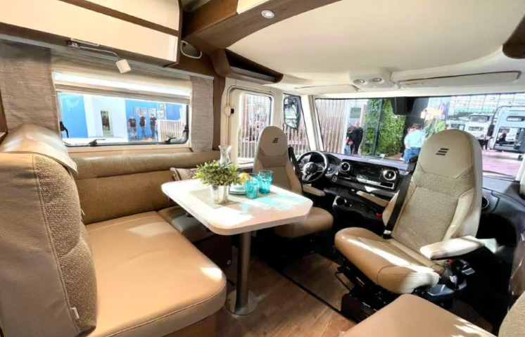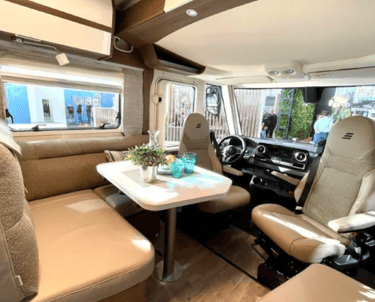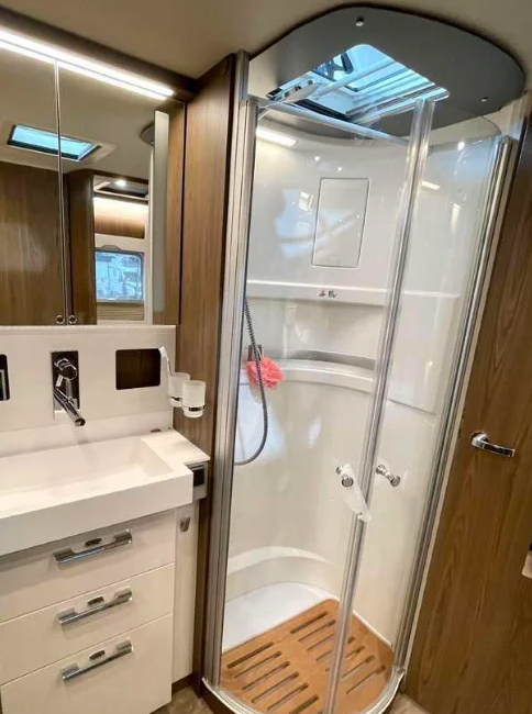 • Панорамний люк HYMER 80 × 50 см з подвійним склінням та LED-підсвіткою у вітальні