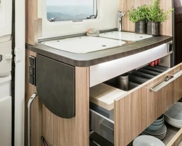 Кухонні шухляди з функцією плавного закривання та вкладкою для столових приборів