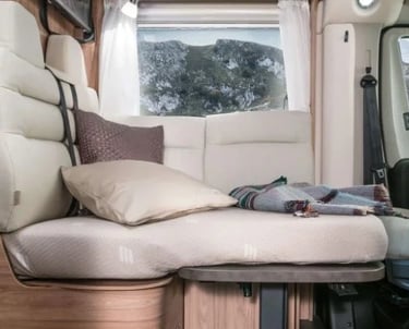 Розміри ліжок: Задні ліжка (см): 2 × 190 × 80; Центральне ліжко, трансформоване з вітальні (см): 165 × 78