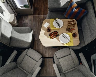 Панорамний люк HYMER 80 × 50 см з подвійним склінням та LED-підсвіткою у вітальні